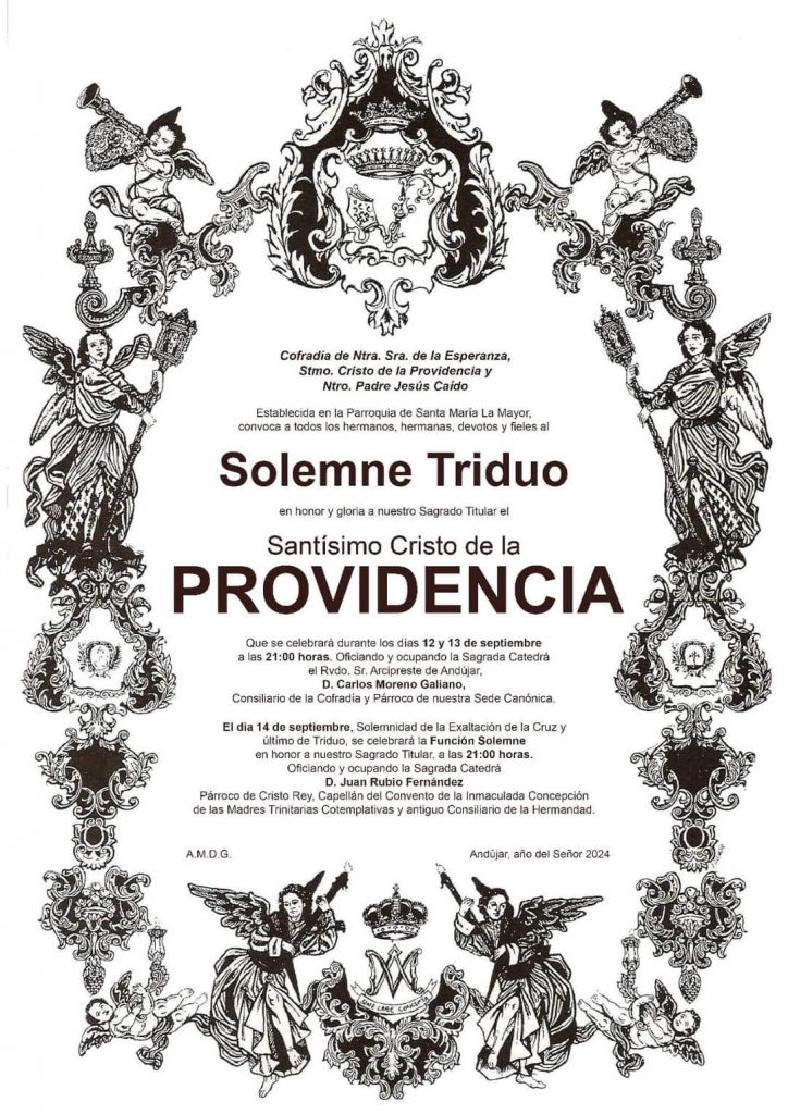 Durante los días 12, 13 y 14 de septiembre celebraremos el Solemne Triduo en honor al Santísimo Cristo de la Providencia.